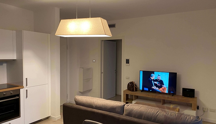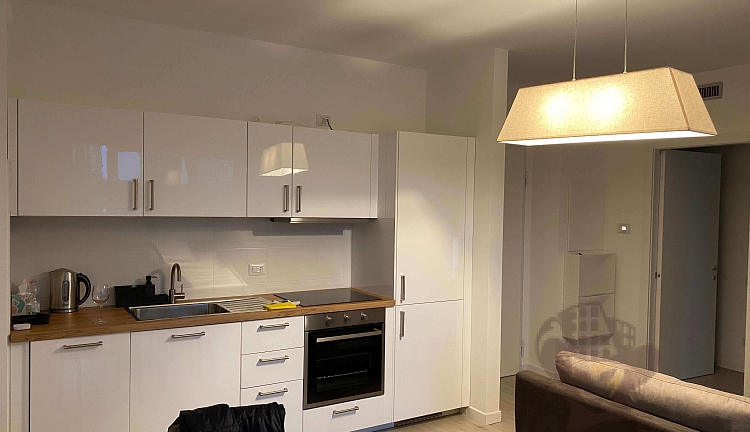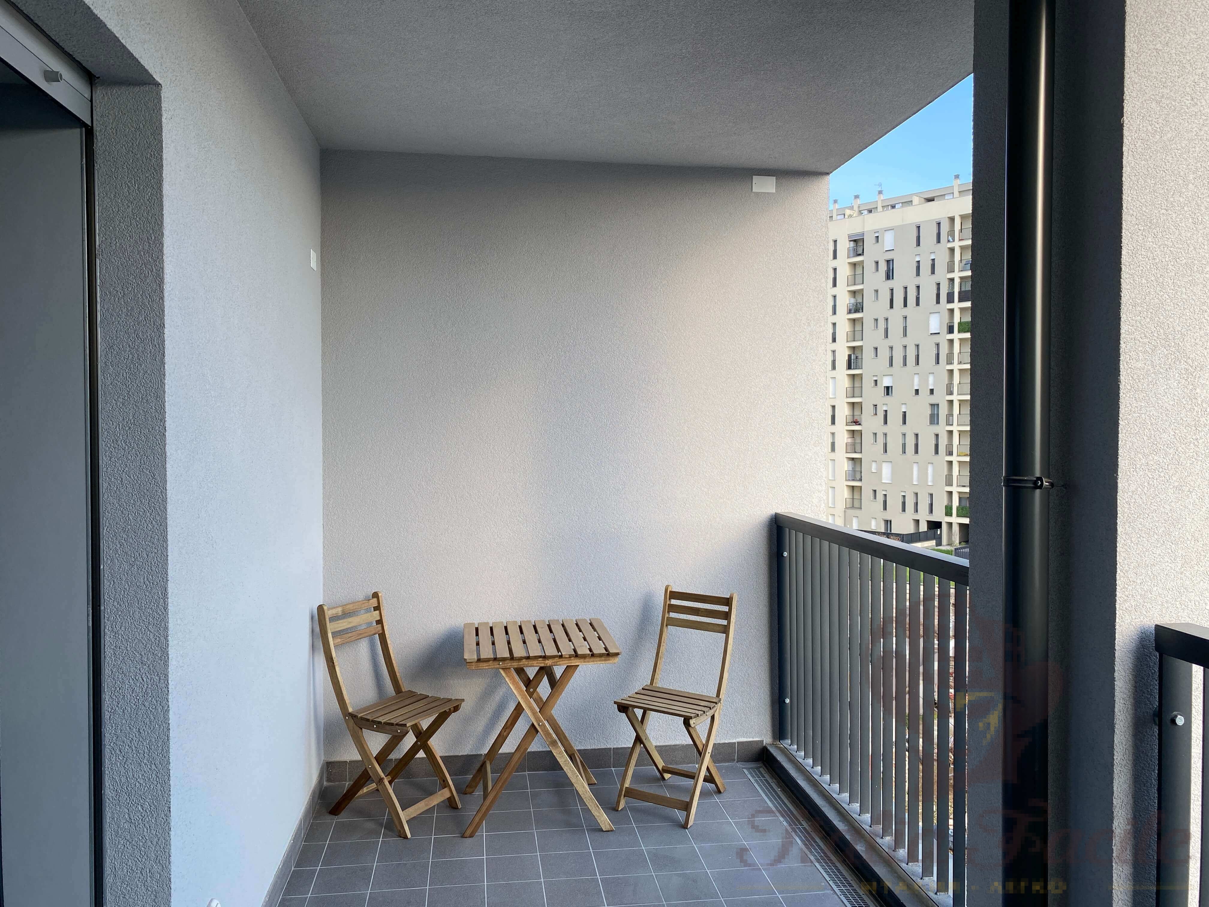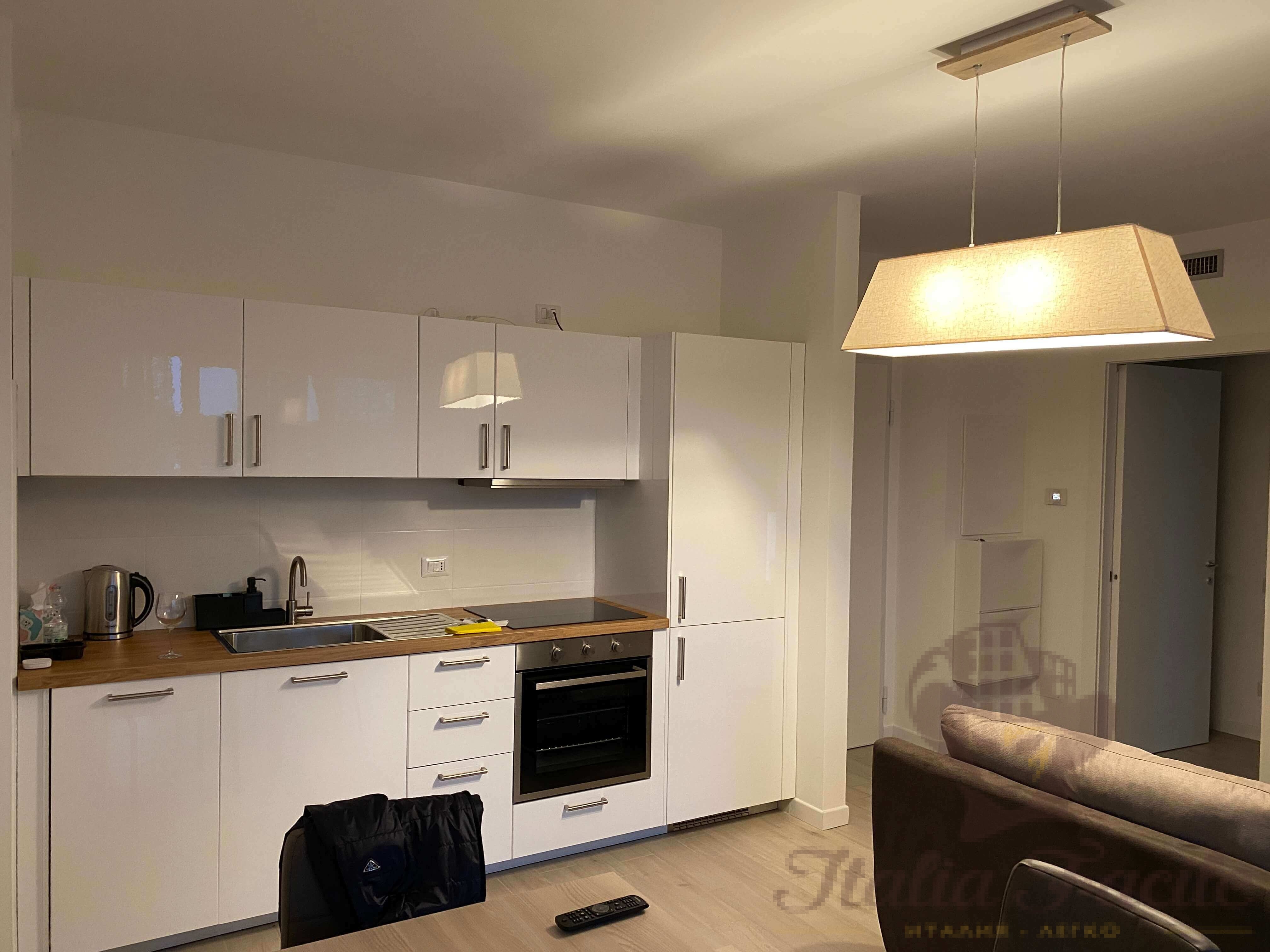 A two-bedroom apartment in Milan is for rent, located a 10-minute walk from the Molino Dorino metro station. The apartment is located in a newly built area in a modern building, featuring new furniture and appliances. It consists of a living room with a kitchen, a separate bedroom, a bathroom, and a large terrace. All necessary appliances are included (induction stove, dishwasher, oven, large refrigerator, air conditioning, and washing machine). The area boasts excellent amenities, including Milan's largest shopping center nearby. The rent includes condominium fees, heating, and cold water. Electricity is billed separately. A deposit is required.