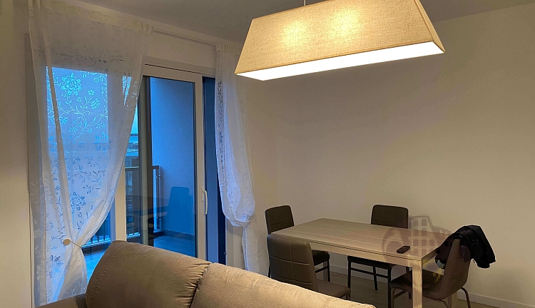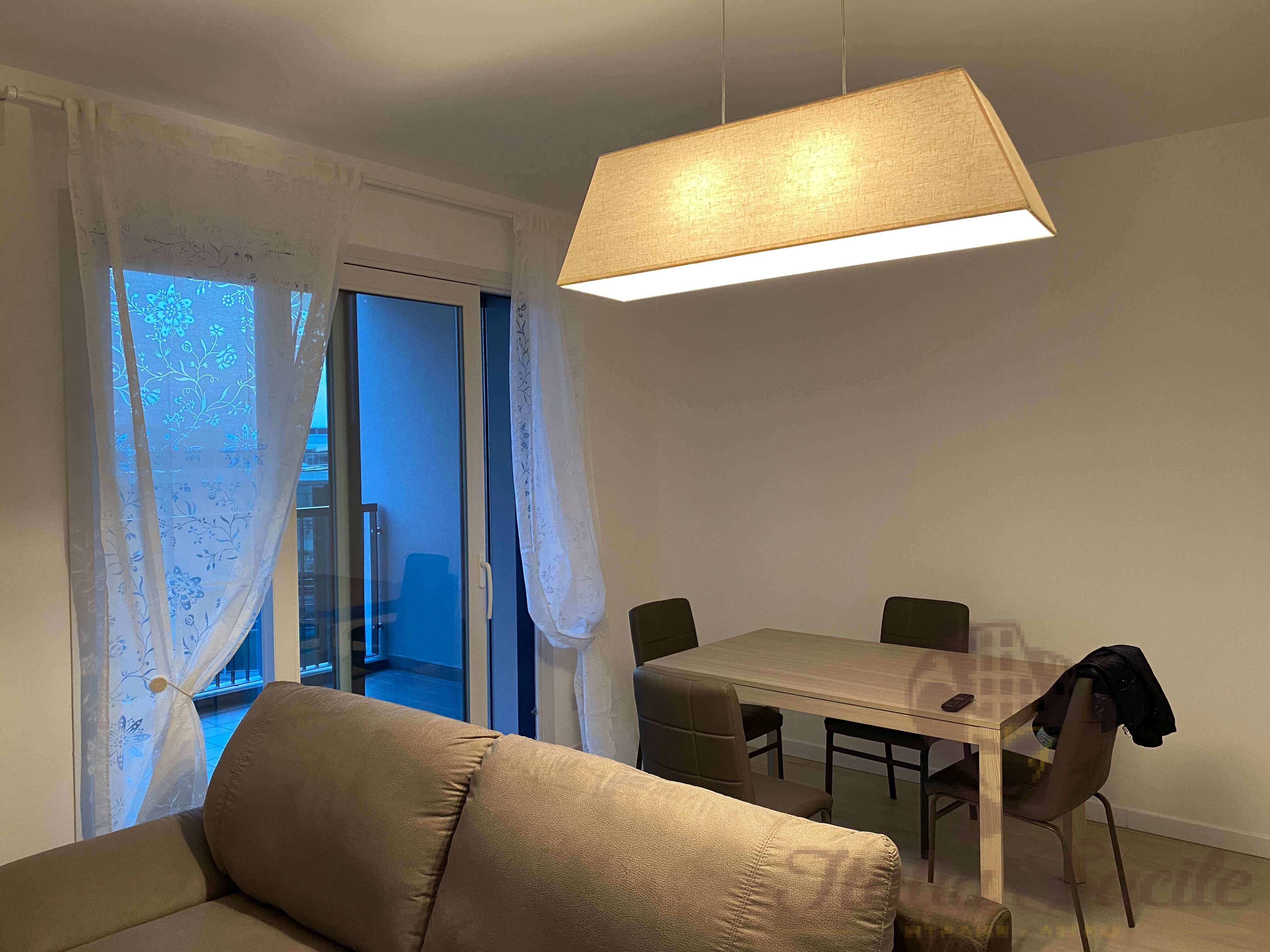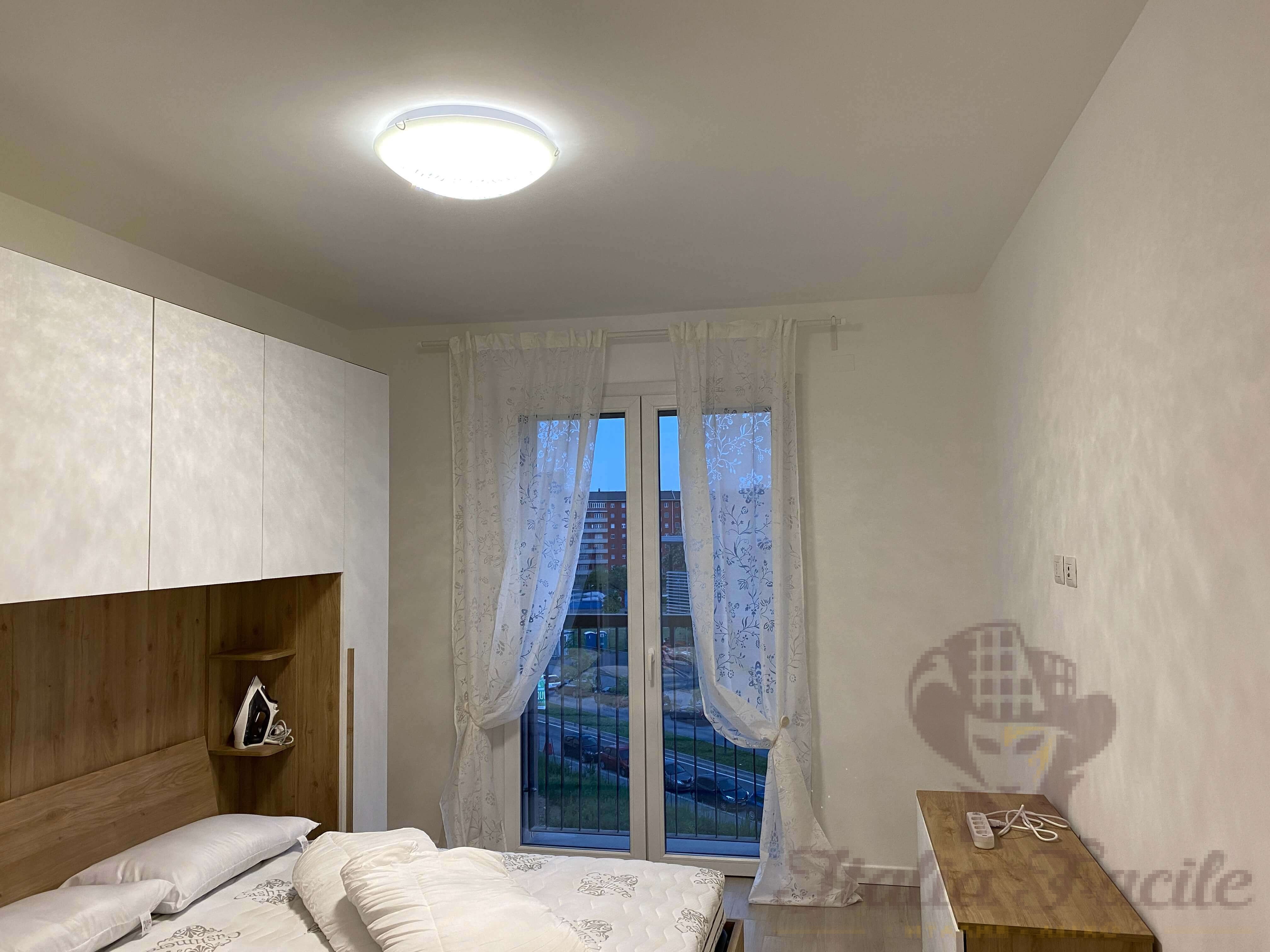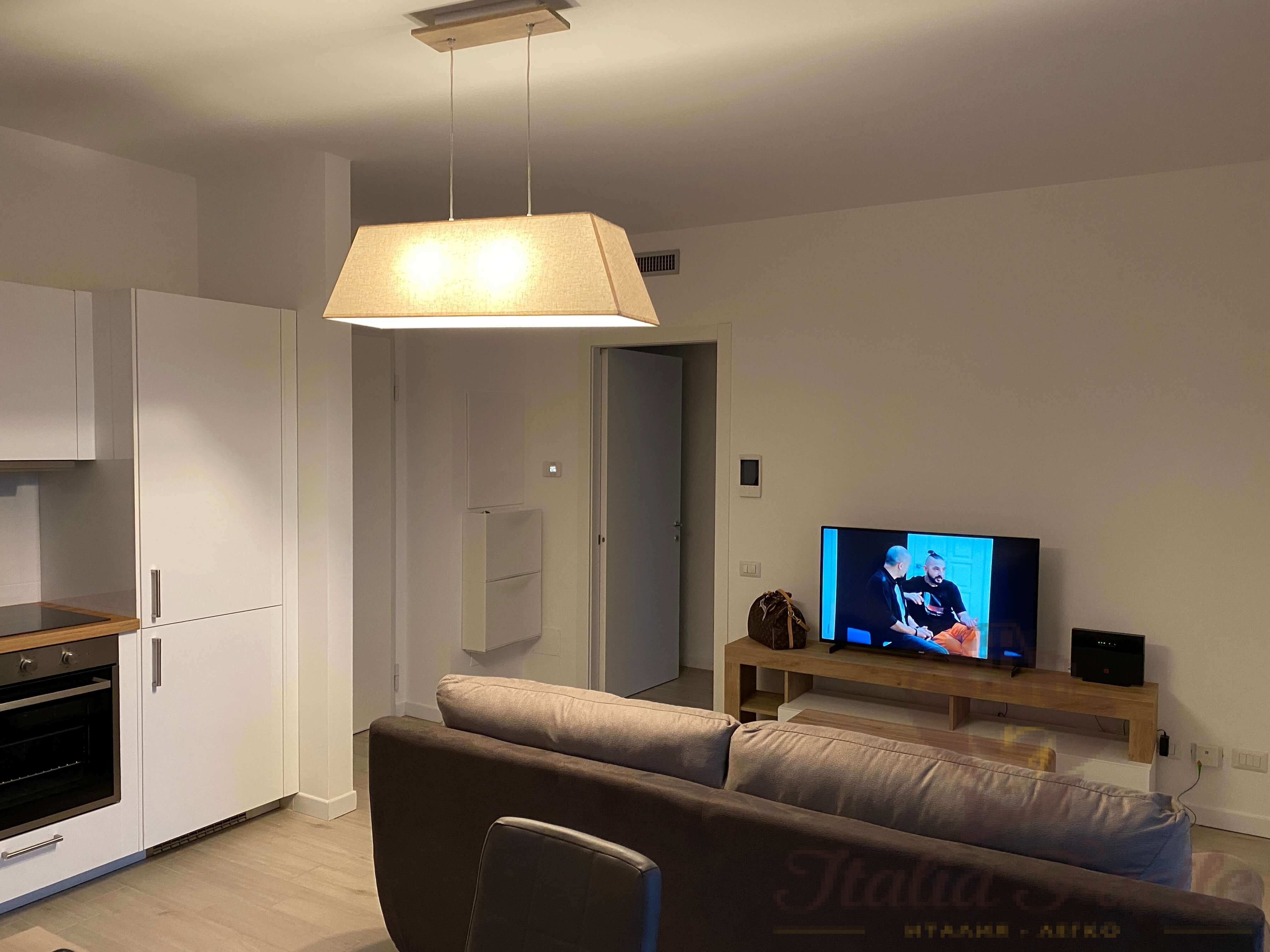 A two-bedroom apartment in Milan is for rent, located a 10-minute walk from the Molino Dorino metro station. The apartment is located in a newly built area in a modern building, featuring new furniture and appliances. It consists of a living room with a kitchen, a separate bedroom, a bathroom, and a large terrace. All necessary appliances are included (induction stove, dishwasher, oven, large refrigerator, air conditioning, and washing machine). The area boasts excellent amenities, including Milan's largest shopping center nearby. The rent includes condominium fees, heating, and cold water. Electricity is billed separately. A deposit is required.